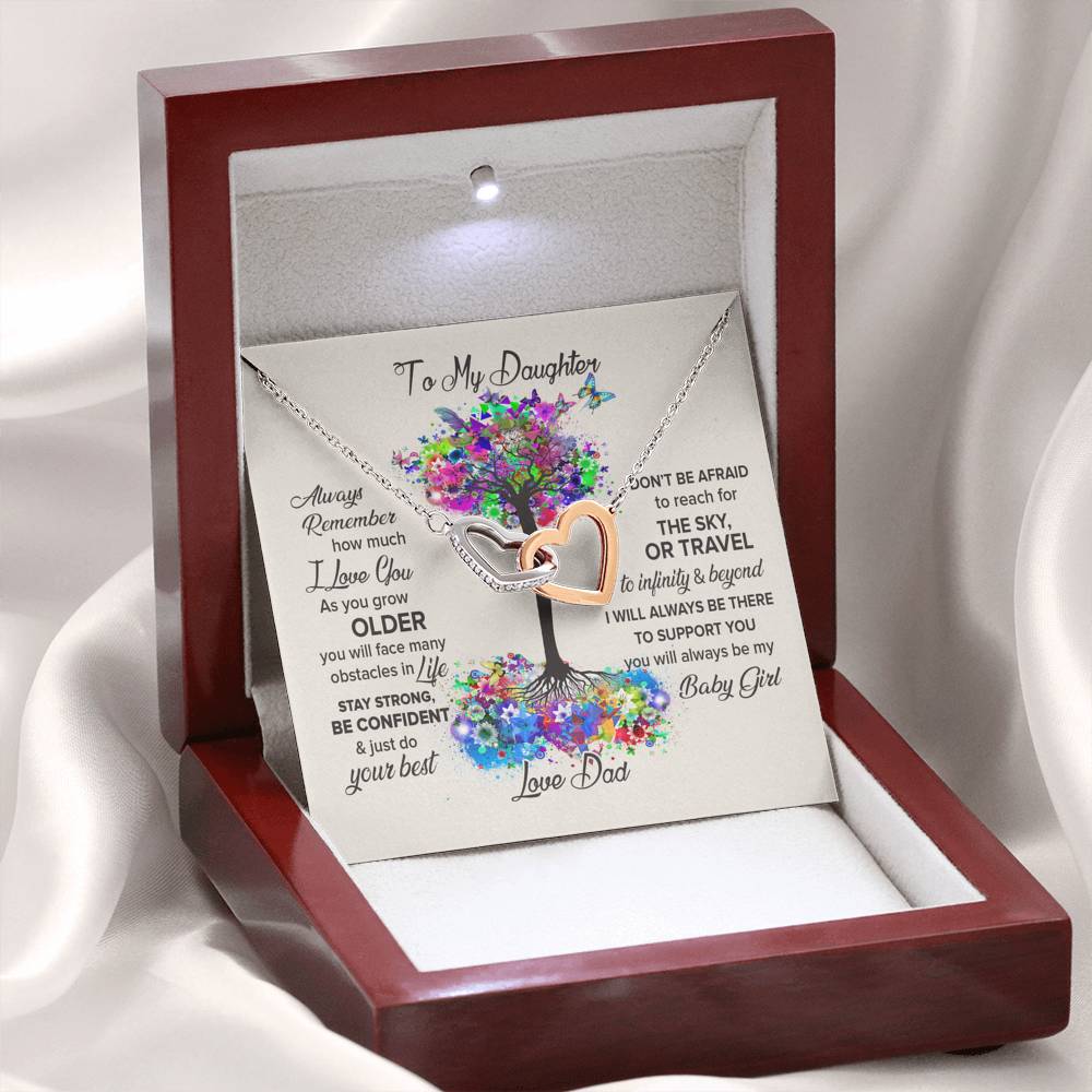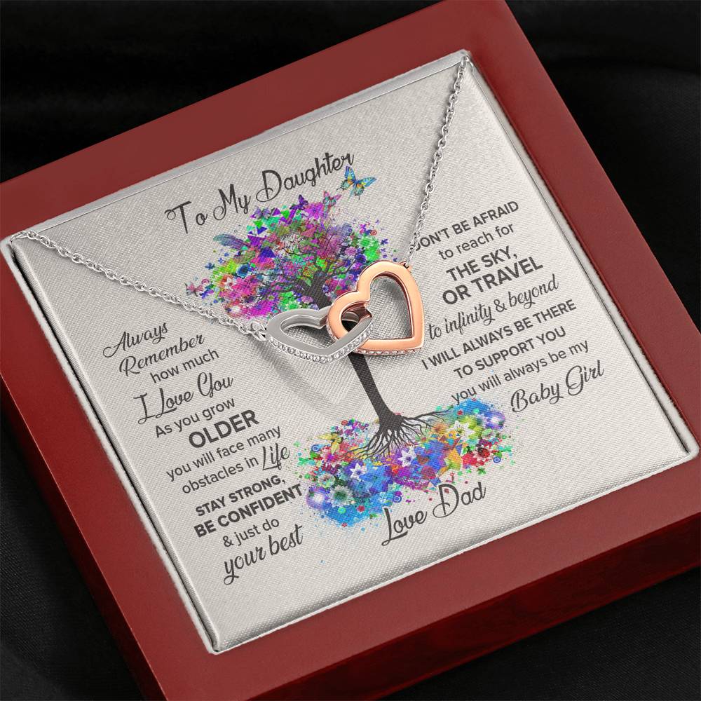 "Always remember how much I love you as you grow older you will face many obstacles in life. Stay strong, be confident and just do your best. Don't be afraid to reach for the sky, or travel to infinity and beyond. I will always be there to support you. You will always be my baby girl"