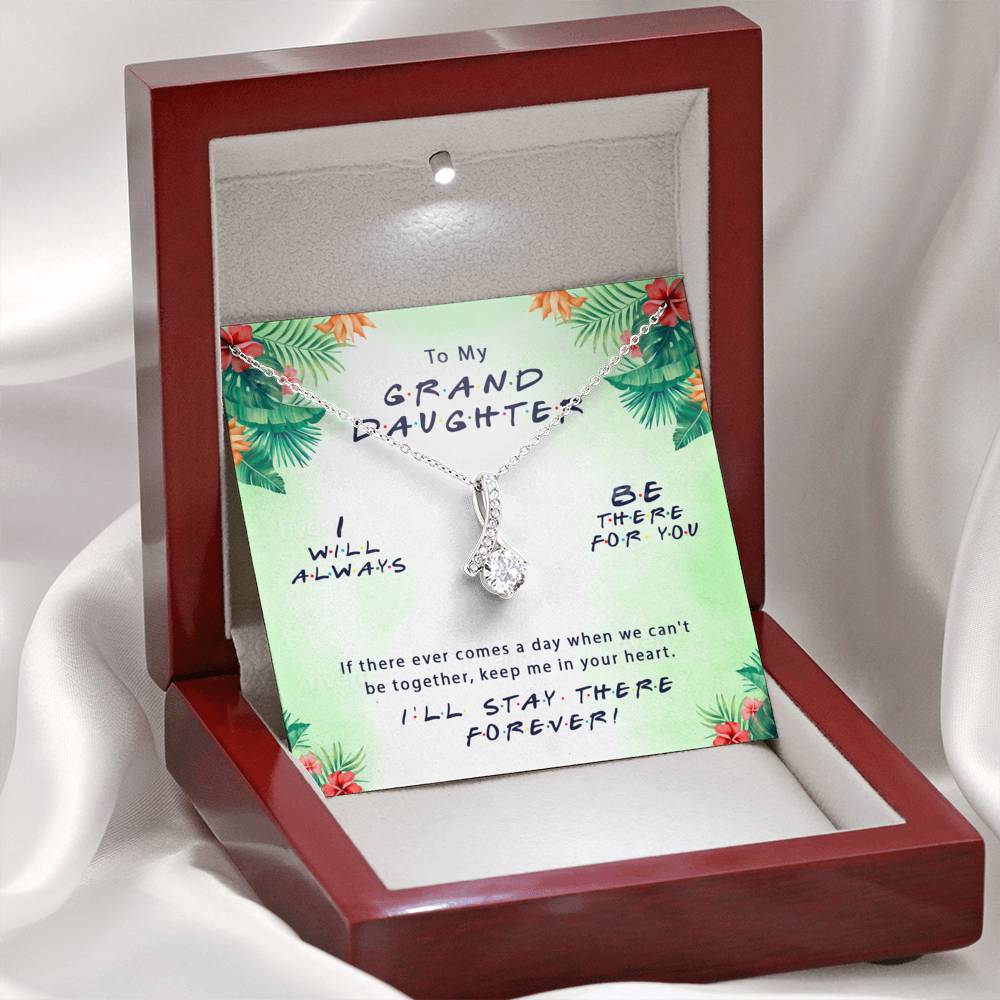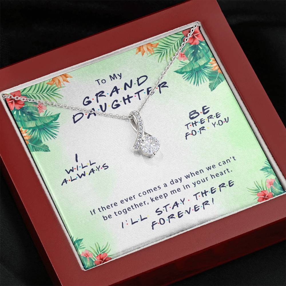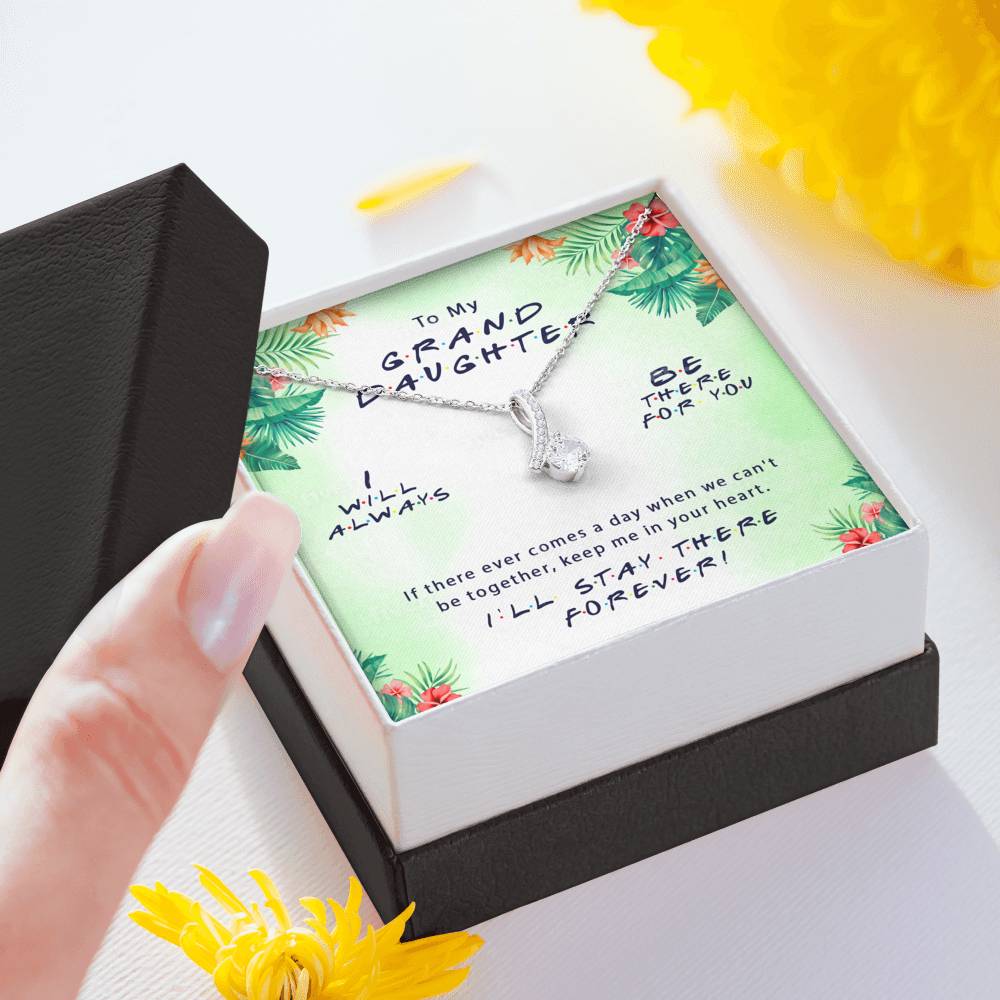 Melt her heart with this ALLURING BEAUTY necklace gift! The petite ribbon shaped pendant is finished with 14K white gold over stainless steel, and is embellished with dainty clear crystals surrounded by a sparkling 7mm round cut Cubic Zirconia.