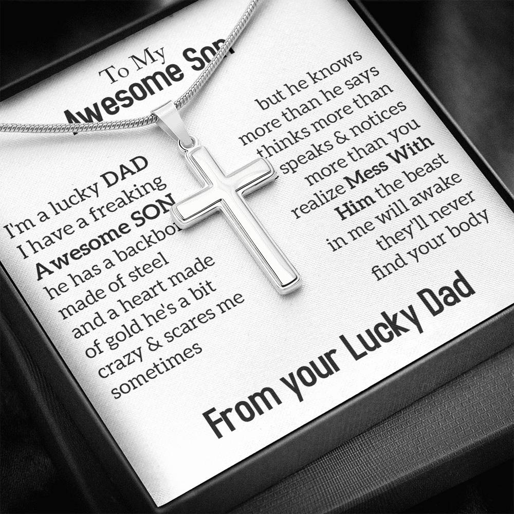 "I'm a lucky Dad, I have a freaking awesome son. He has a backbone made of steel and a heart made of gold. He's a bit crazy & scares me sometimes. But he knows more than he says, thinks more than he speaks & notices more than you realize. Mess with him the beast in me will awake. They'll never find your body."
