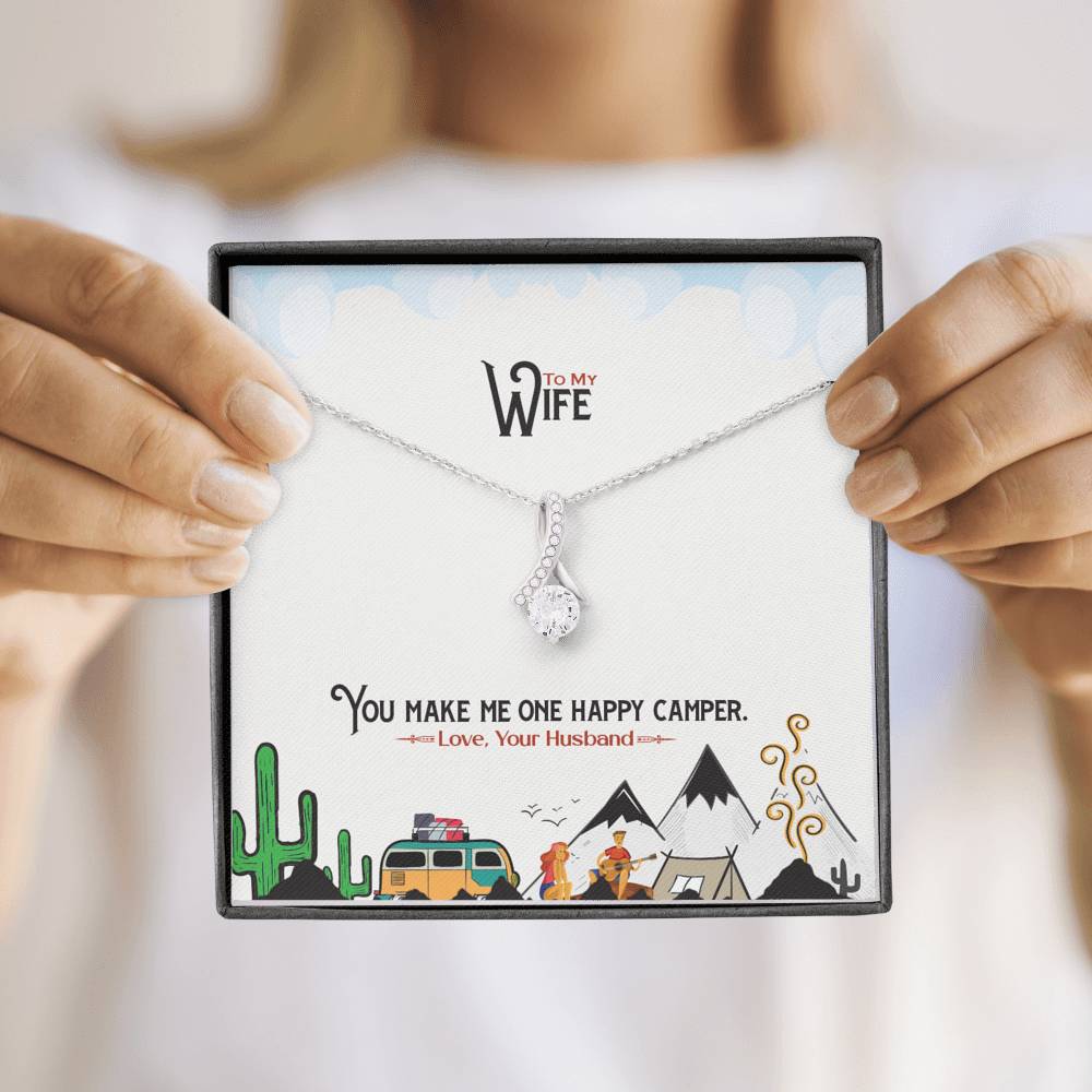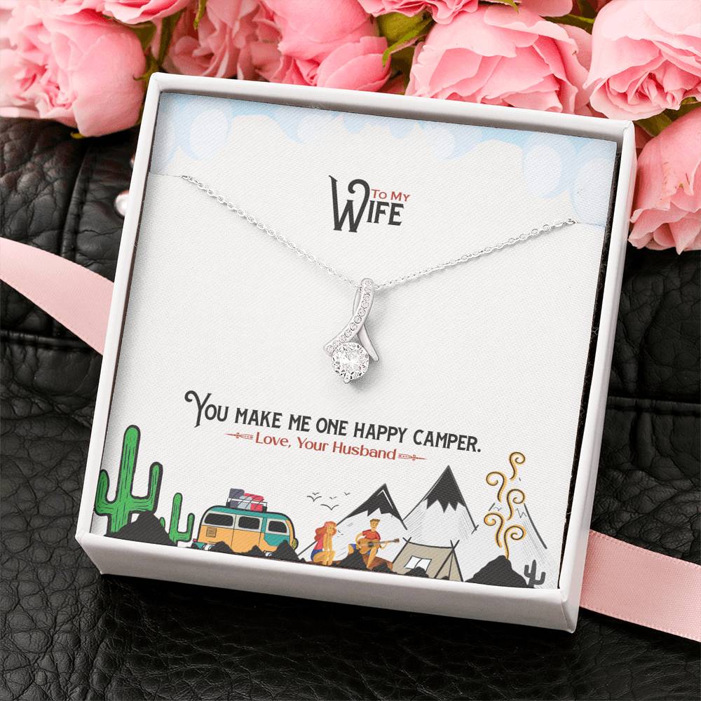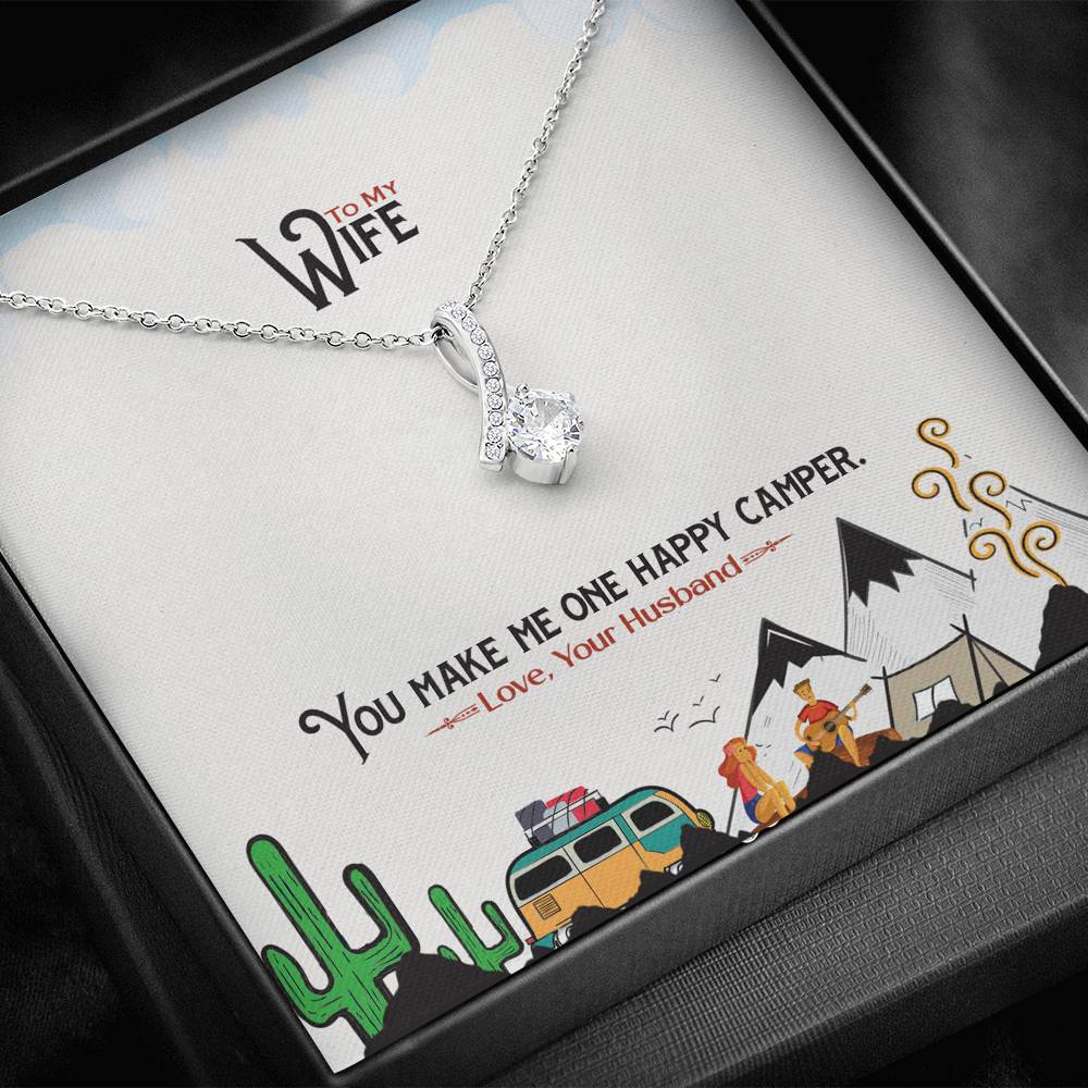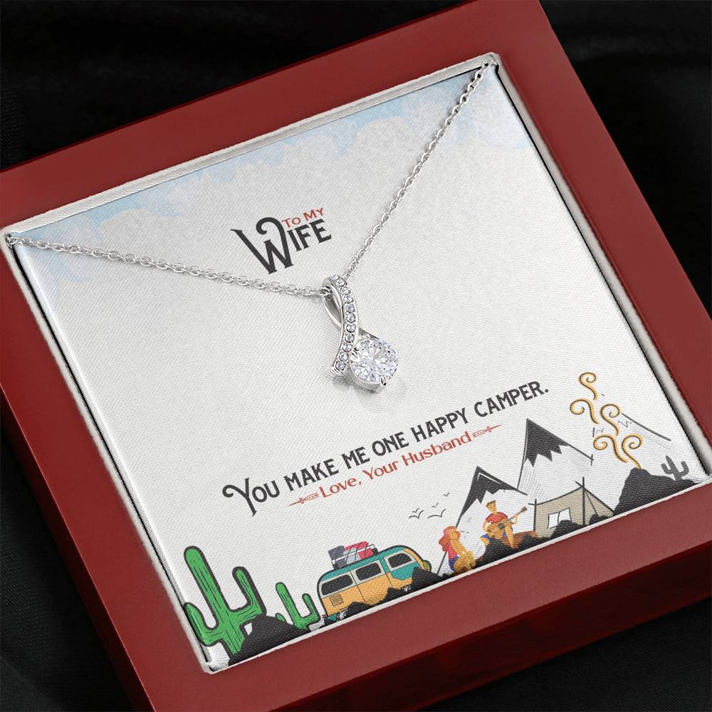 Melt her heart with this ALLURING BEAUTY necklace gift! The petite ribbon shaped pendant is finished with 14K white gold over stainless steel, and is embellished with dainty clear crystals surrounded by a sparkling 7mm round cut Cubic Zirconia.