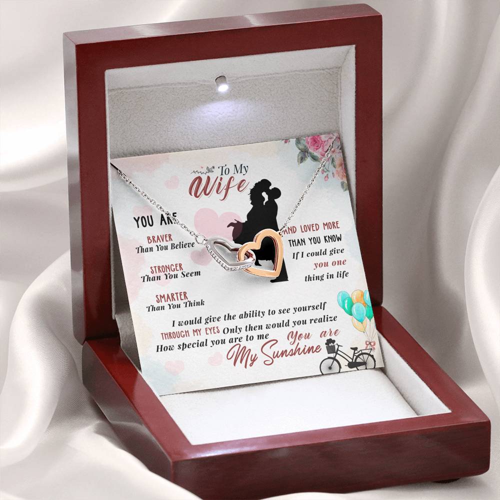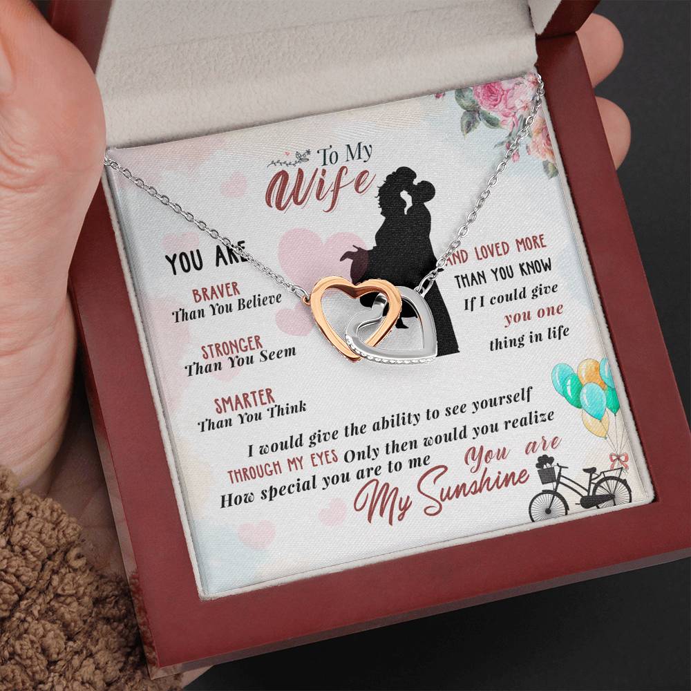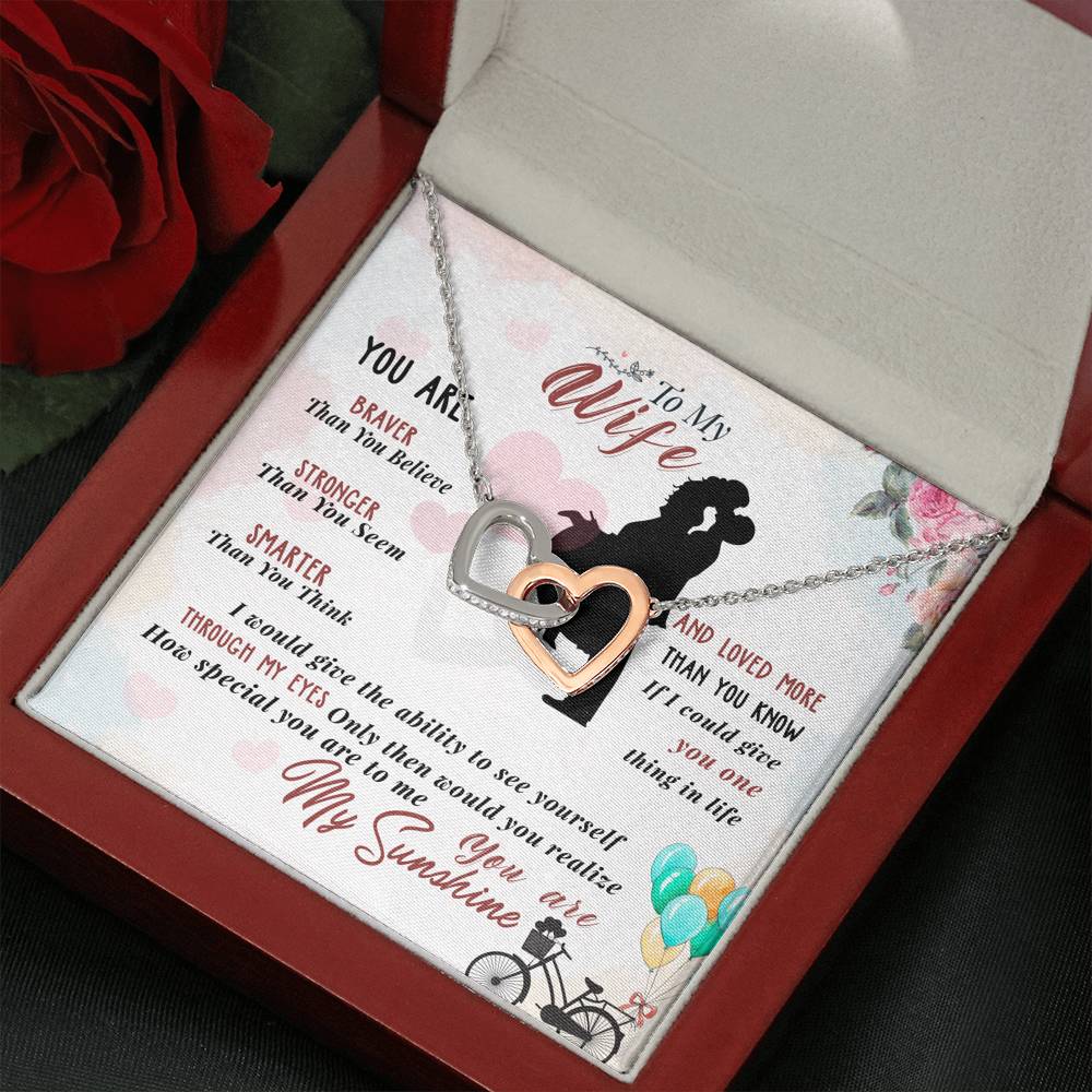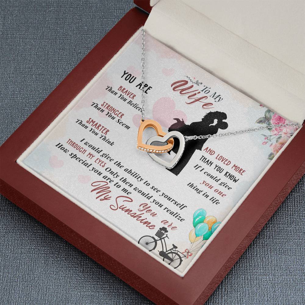 "You are braver than you believe, stronger than you seem, smarter than you think and loved more than you know. If I could give you one thing in life I would give you the ability to see yourself through my eyes. Only then would you realize how special you are to me. You are my sunshine."