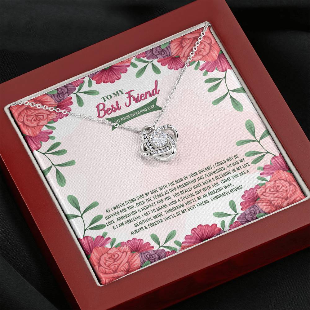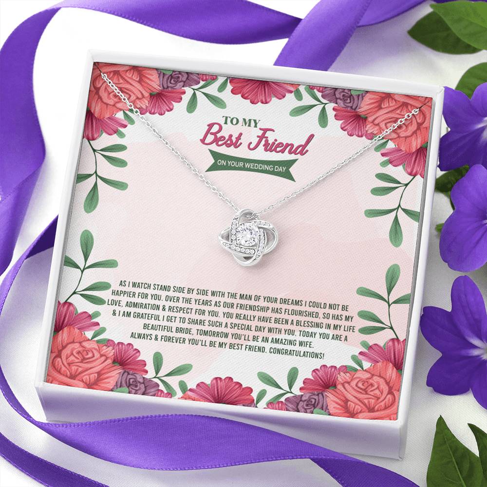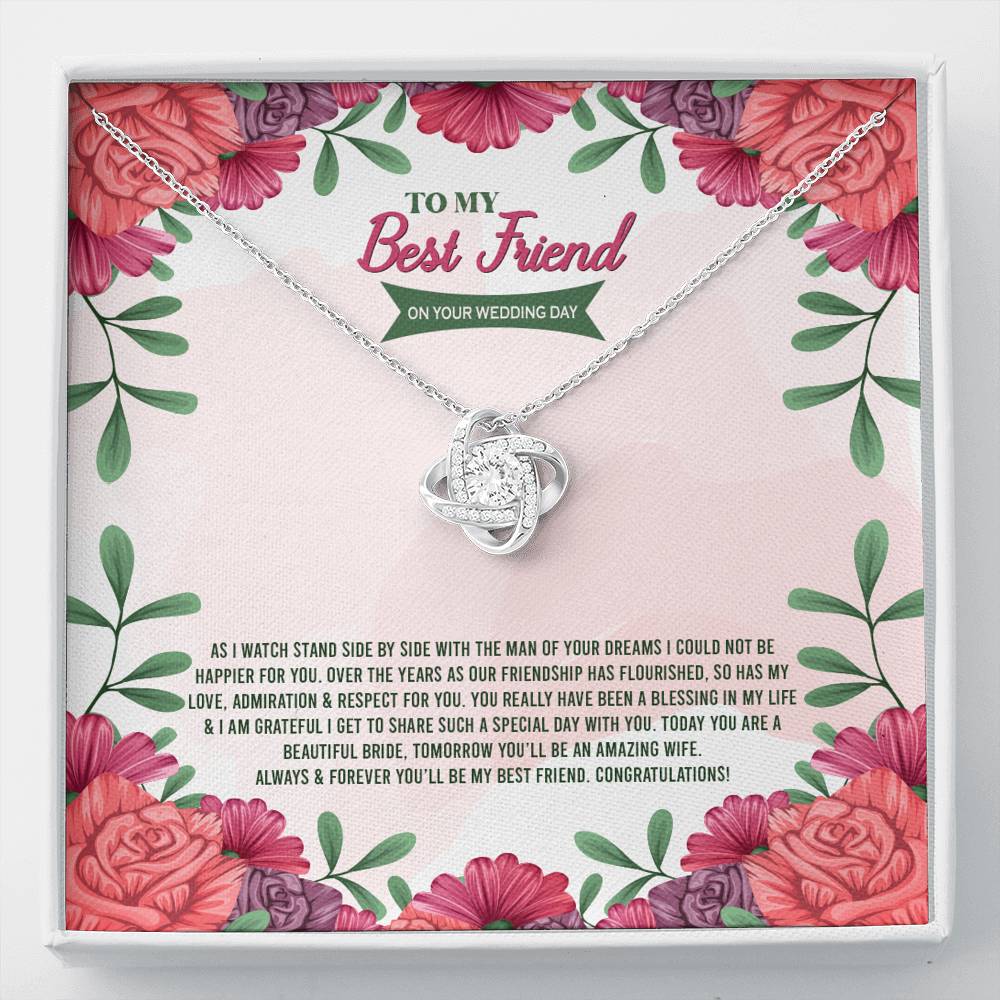 "As I watch stand side by side with the man of your dreams I could not be happier for you. Over the years as our friendship has flourished, so has my love, admiration & respect for you. You really have been a blessing in my life & I am grateful I get to share such a special day with you. Today you are a beautiful bride, tomorrow you'll be an amazing wife. Always & forever you'll be my best friend. Congratulations"