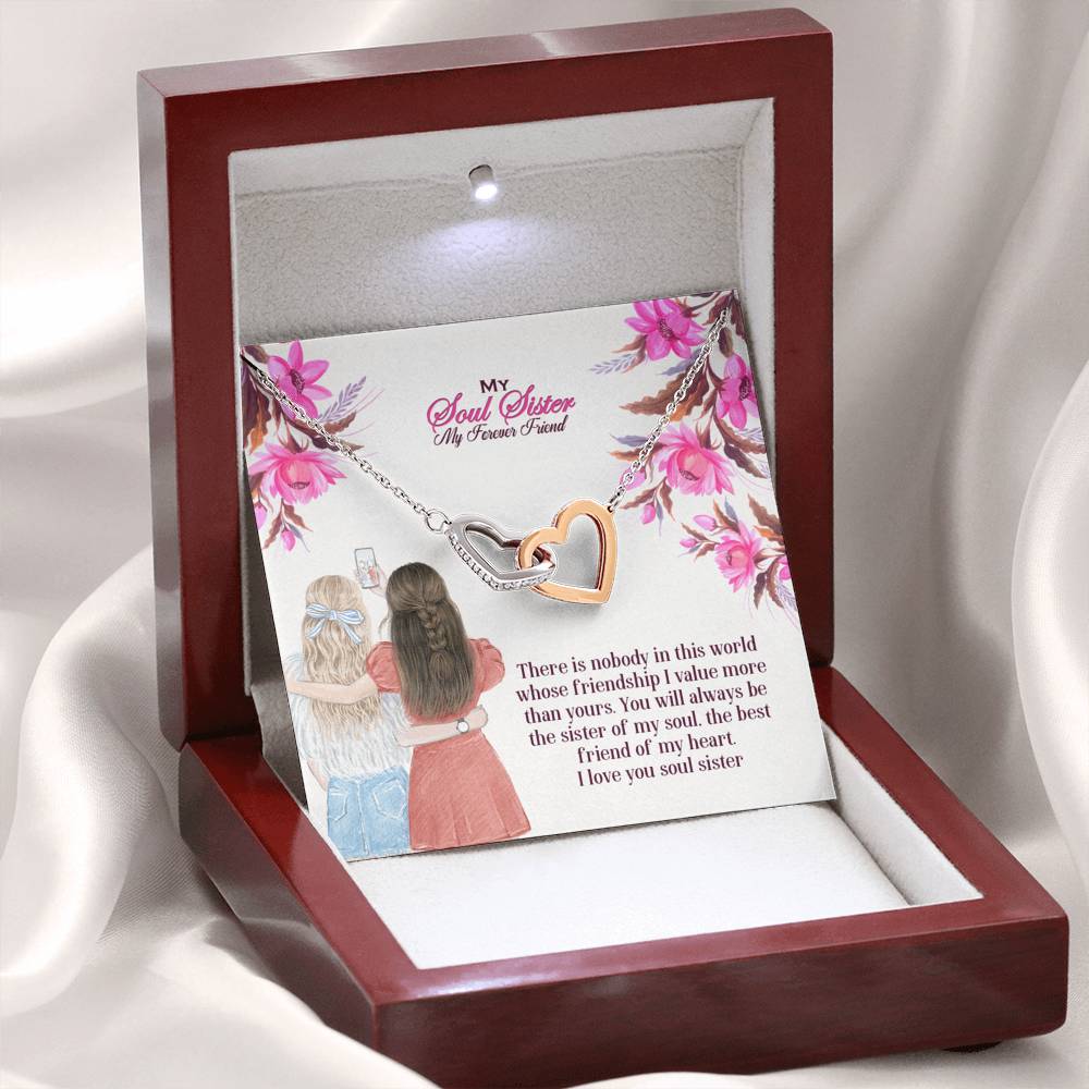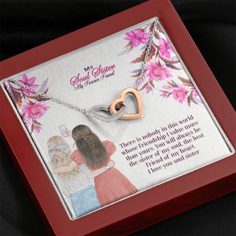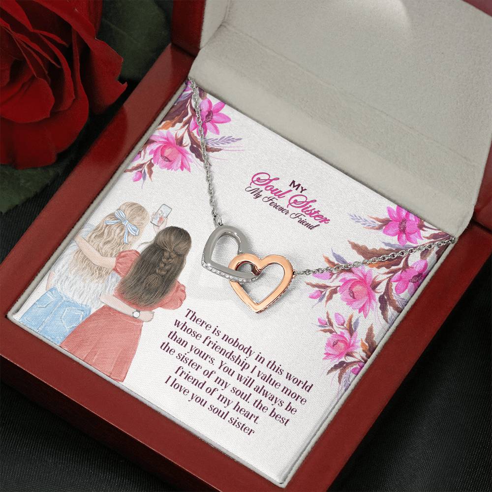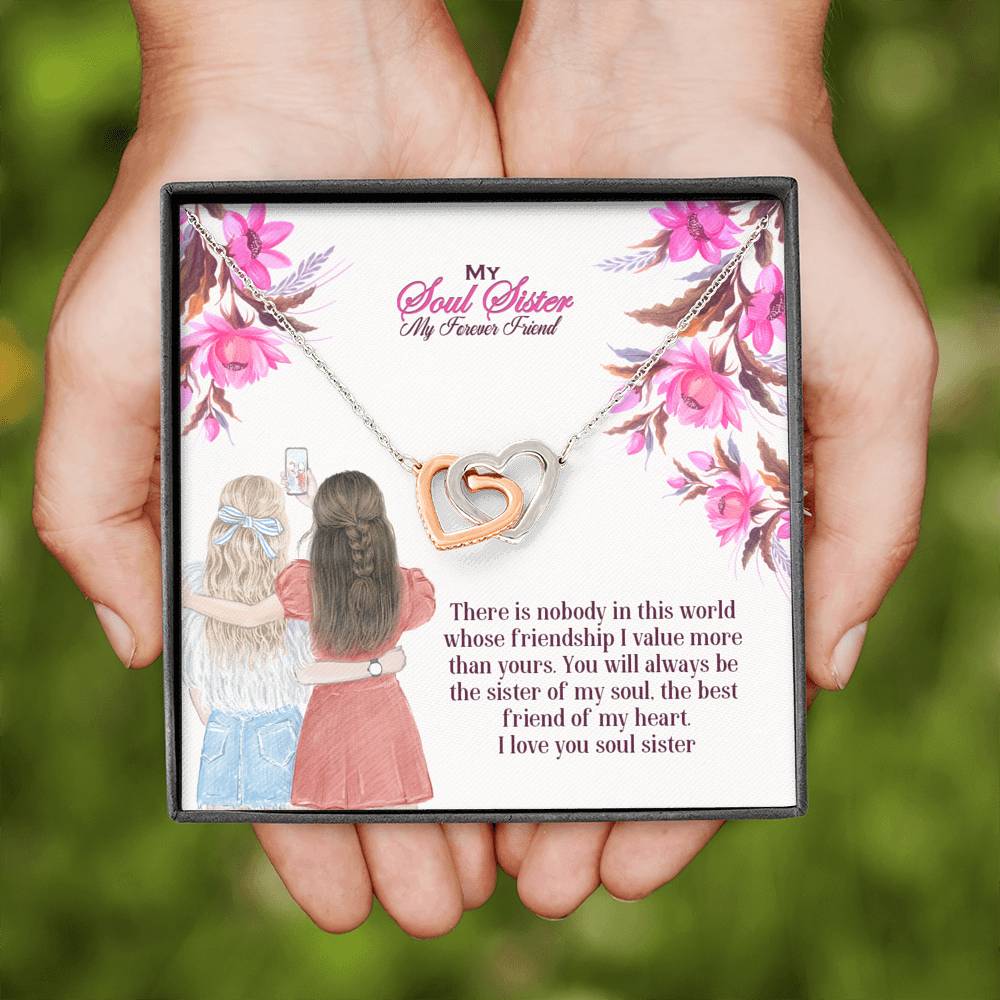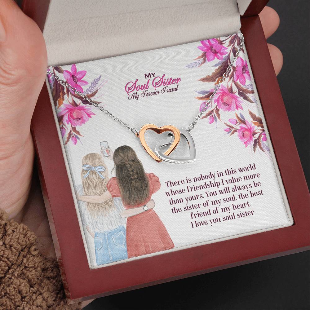 "There is nobody in this world whose friendship I value more than yours. You will always be the sister of my soul, the best friend of my heart. I love you soul sister"