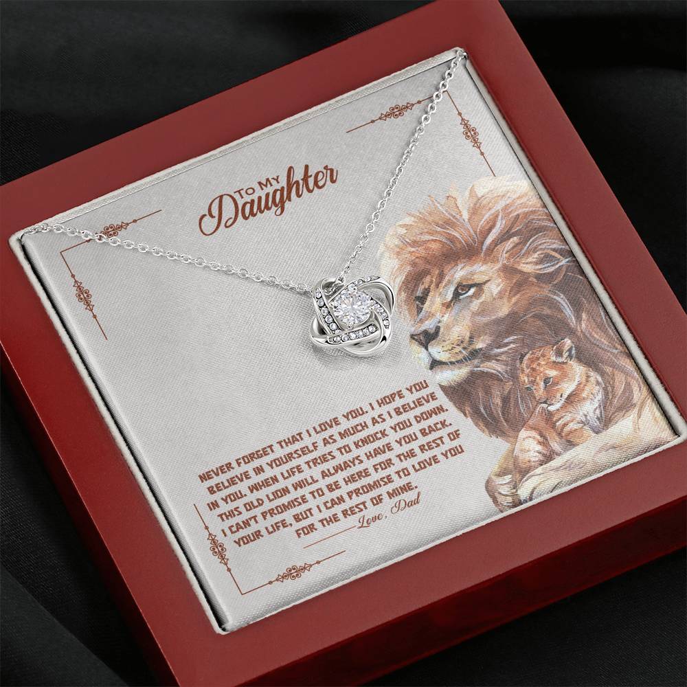 "Never forget that I love you. I hope you believe in yourself as much as I believe in you. When life tries to knock you down. This old lion will always have you back. I can't promise to be here for the rest of your life, but I can promise to love you for the rest of mine."