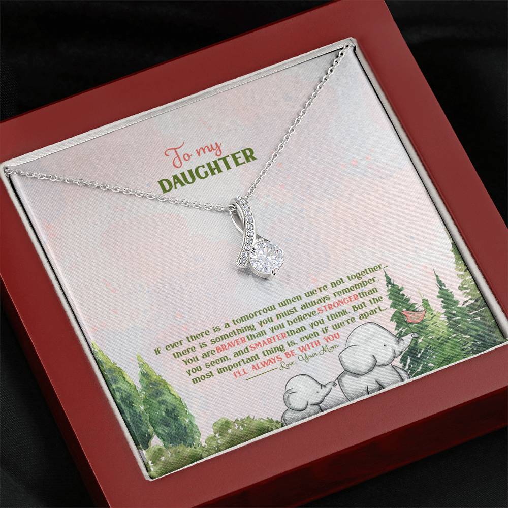 Melt her heart with this ALLURING BEAUTY necklace gift! The petite ribbon shaped pendant is finished with 14K white gold over stainless steel, and is embellished with dainty clear crystals surrounded by a sparkling 7mm round cut Cubic Zirconia.