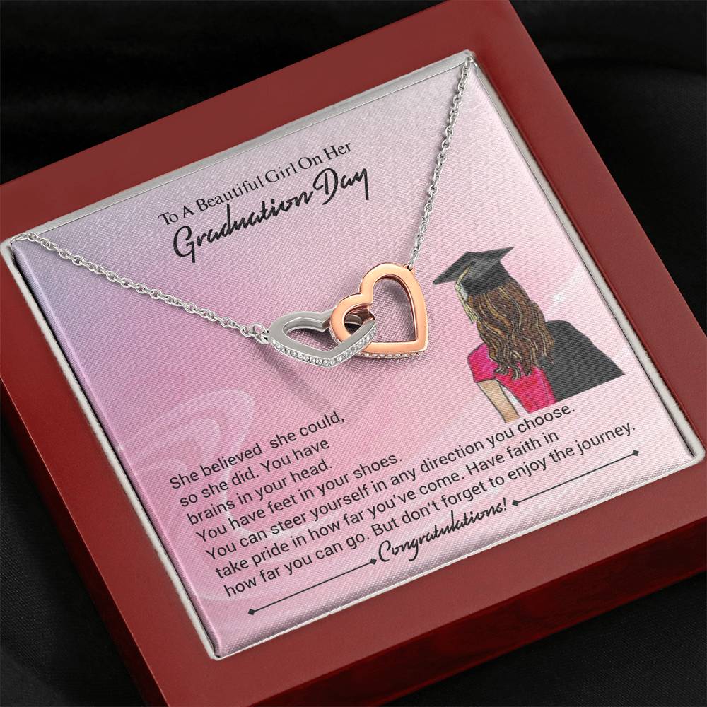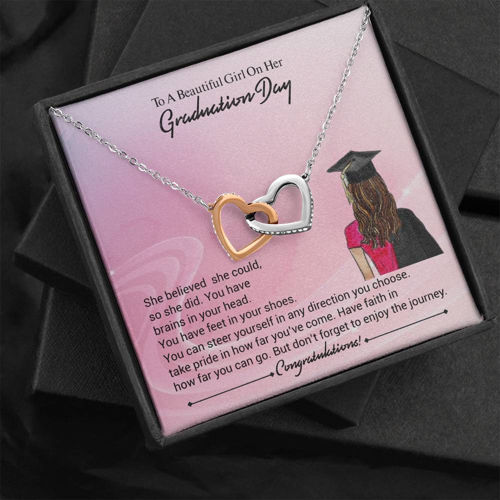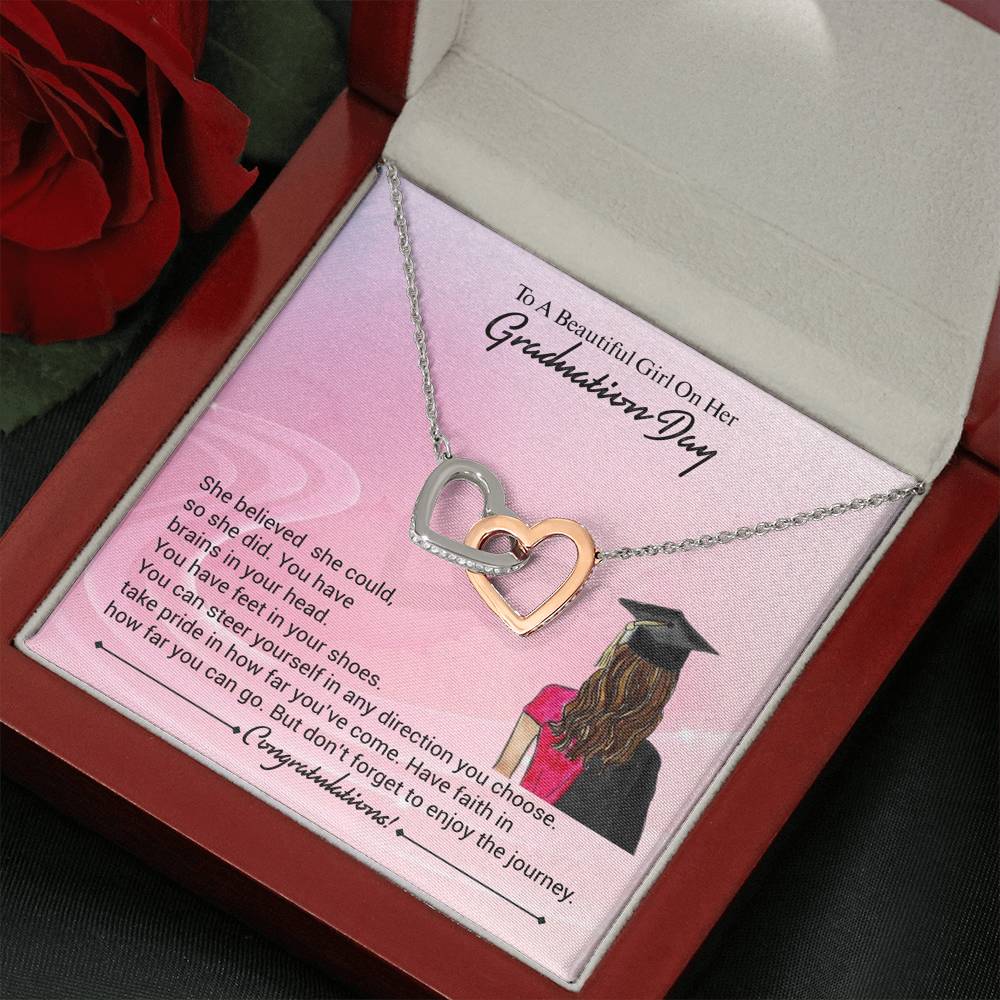Two hearts embellished with Cubic Zirconia stones, interlocked together as a symbol of never-ending love. Made with high quality polished surgical steel. Cable chain measures 18 inches with a 4 inch extension, and fastens with a lobster clasp.