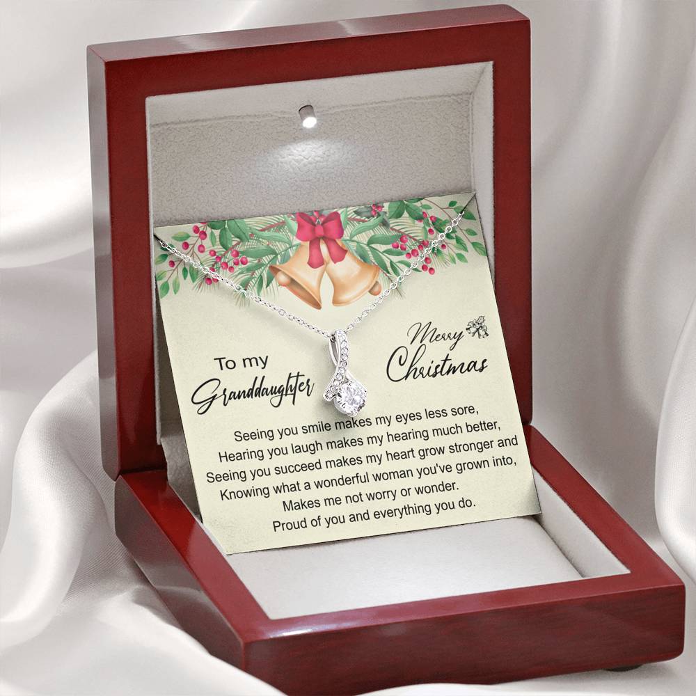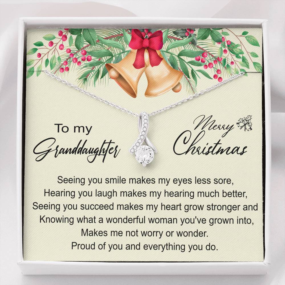 "Seeing you smile makes my eyes less sore, Hearing you laugh makes my hearing much better, Seeing you succeed makes my heart grow stronger and knowing what a wonderful woman you've grown into, makes me not worry or wonder. Proud of you and everything you do."