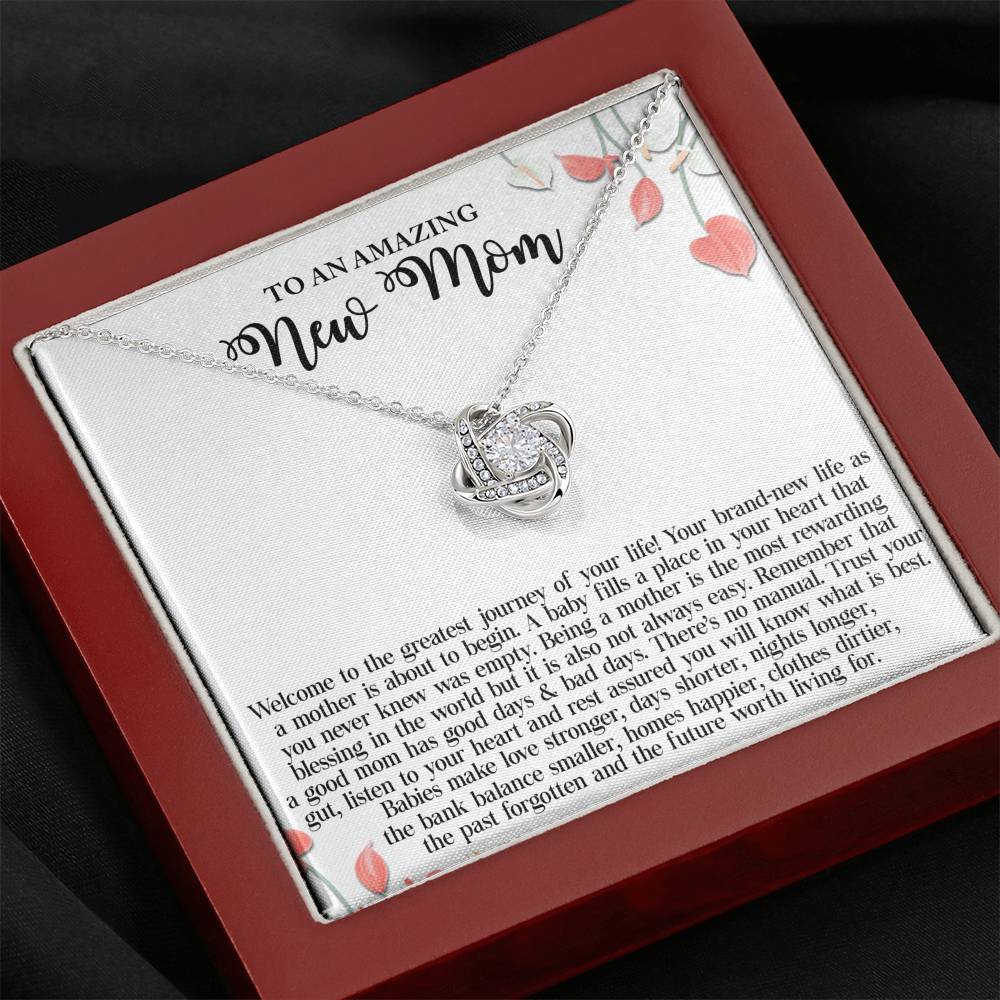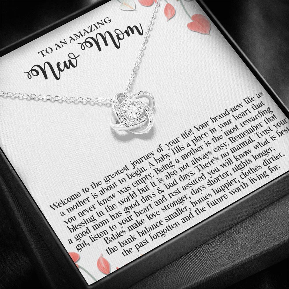 "Welcome to the greatest journey of your life! Your brand-new life as a mother is about to begin. A baby fills a place in your heart that you never knew was empty. Being a mother is the most rewarding blessing in the world but it is also not always easy. Remember that a good mom has good days and bad days. There's no manual. Trust your gut, listen to your heart and rest assured you will know what is best. Babies make love stronger, days shorter, nights longer, the bank balance smaller, homes happier, clothes dirtier, the past forgotten and the future worth living for."