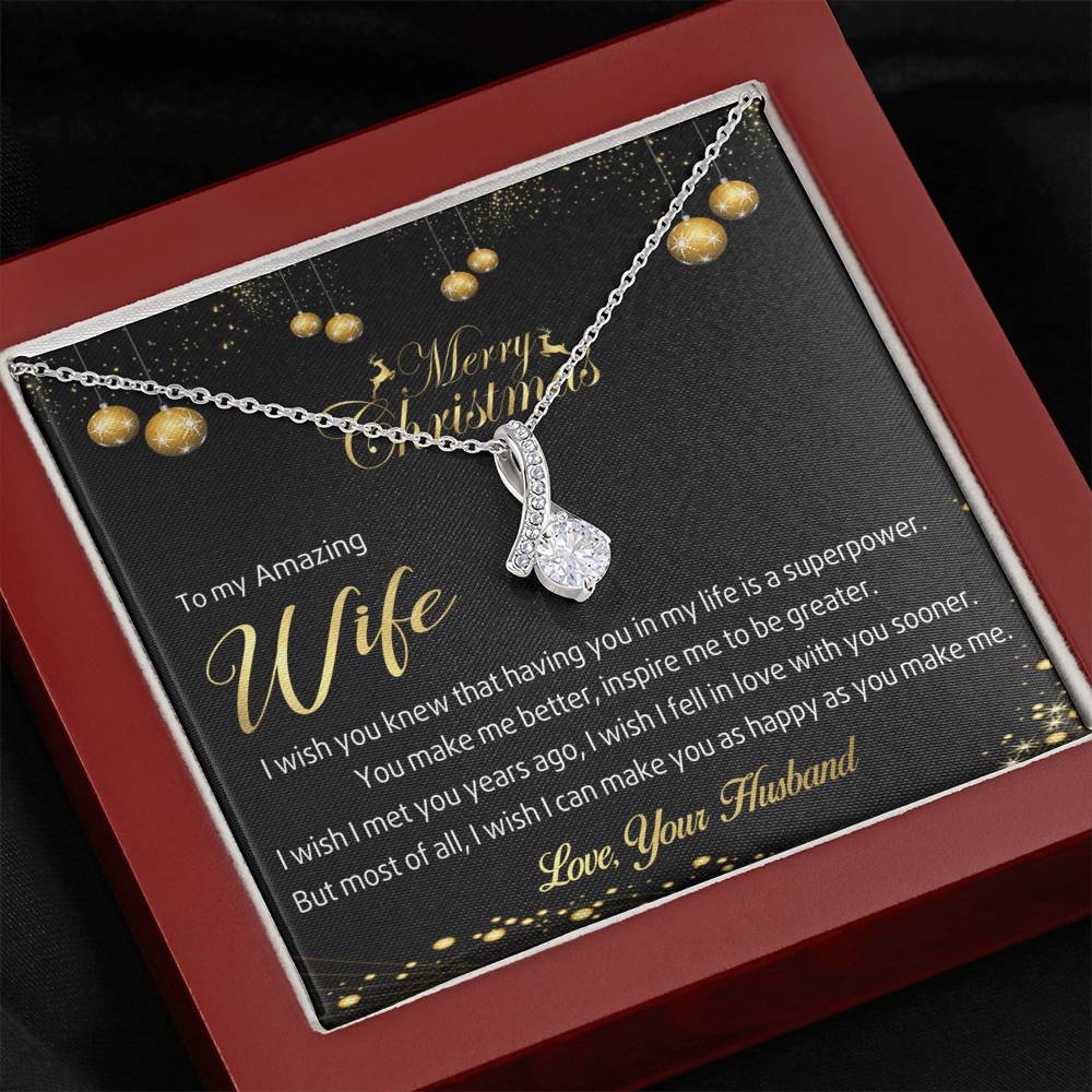 Melt her heart with this ALLURING BEAUTY necklace gift! The petite ribbon shaped pendant is finished with 14K white gold over stainless steel, and is embellished with dainty clear crystals surrounded by a sparkling 7mm round cut Cubic Zirconia.