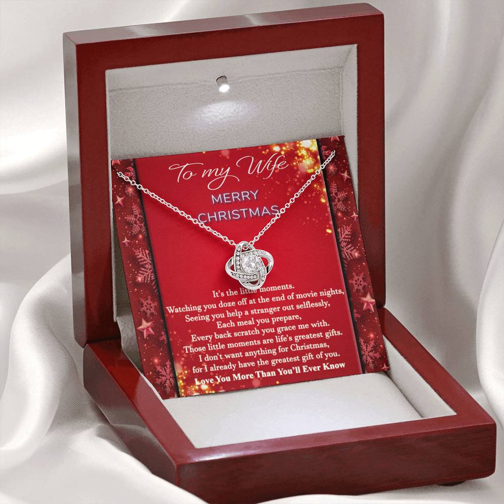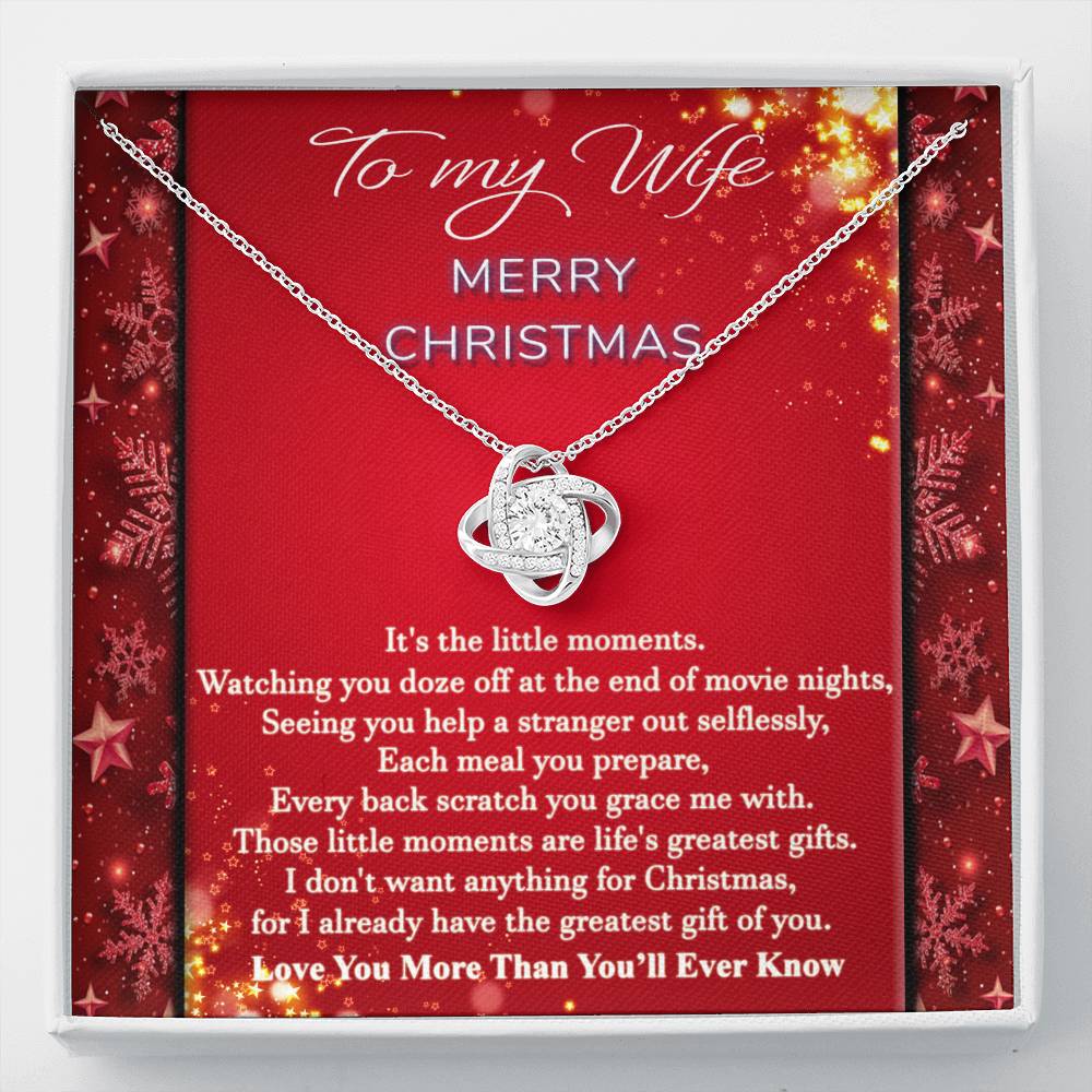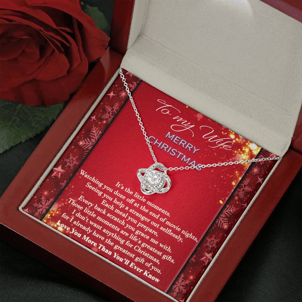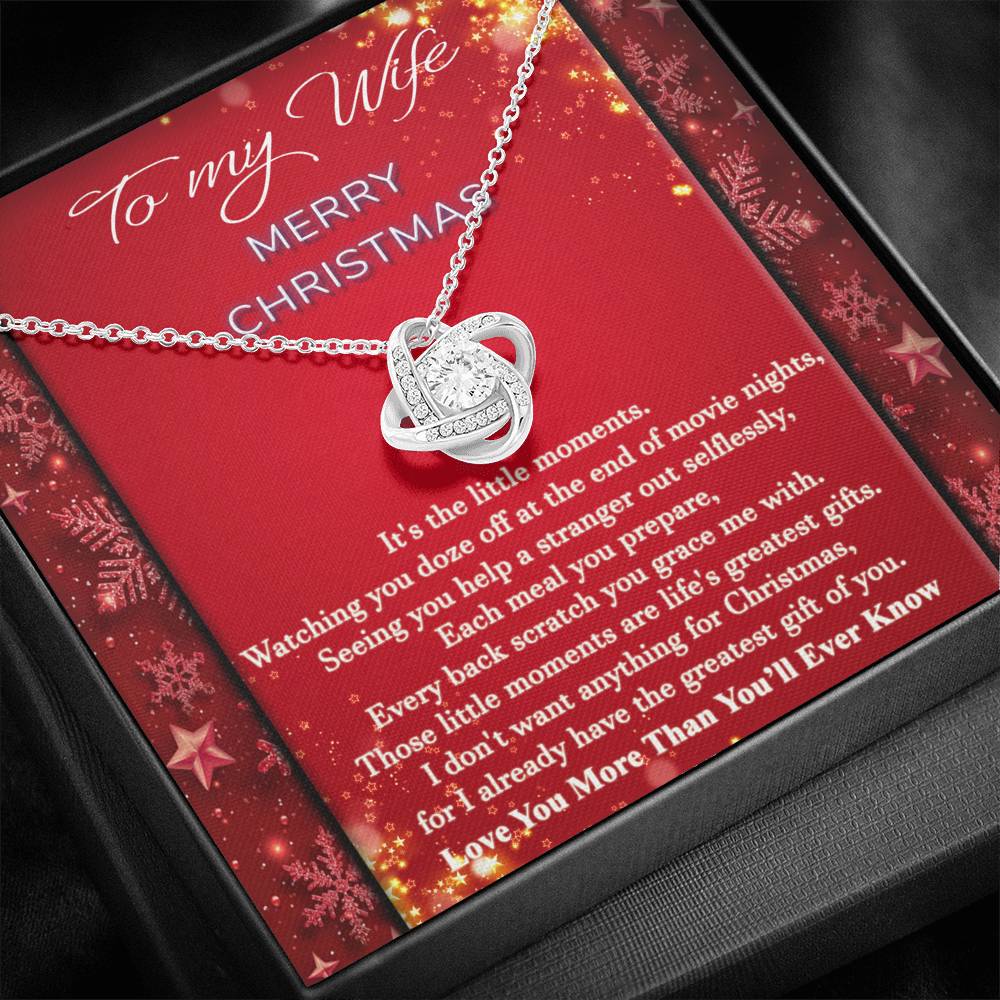 "It's the little moments. Watching you doze off at the end of movie nights, seeing you help a stranger out selflessly, each meal you prepare, every back scratch you grace me with. Those little moments are life's greatest gifts. I don't want anything for Christmas, for I already have the greatest gift of you. Love you more than you'll ever know."